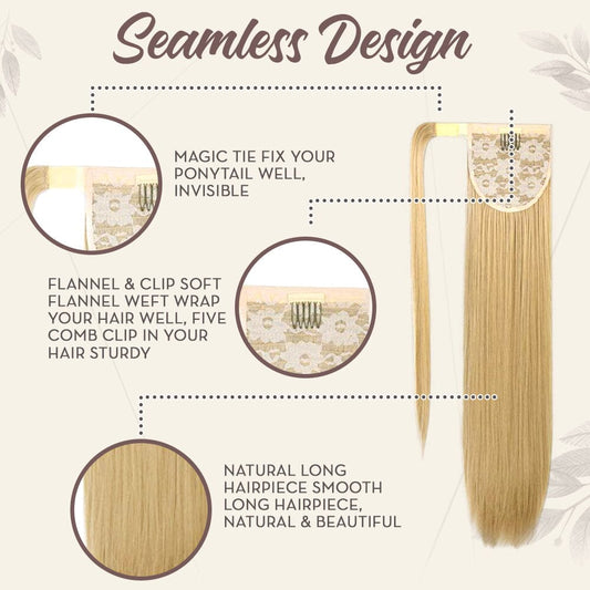 Snugvego Long Ponytail Extension Straight Wrap Clip